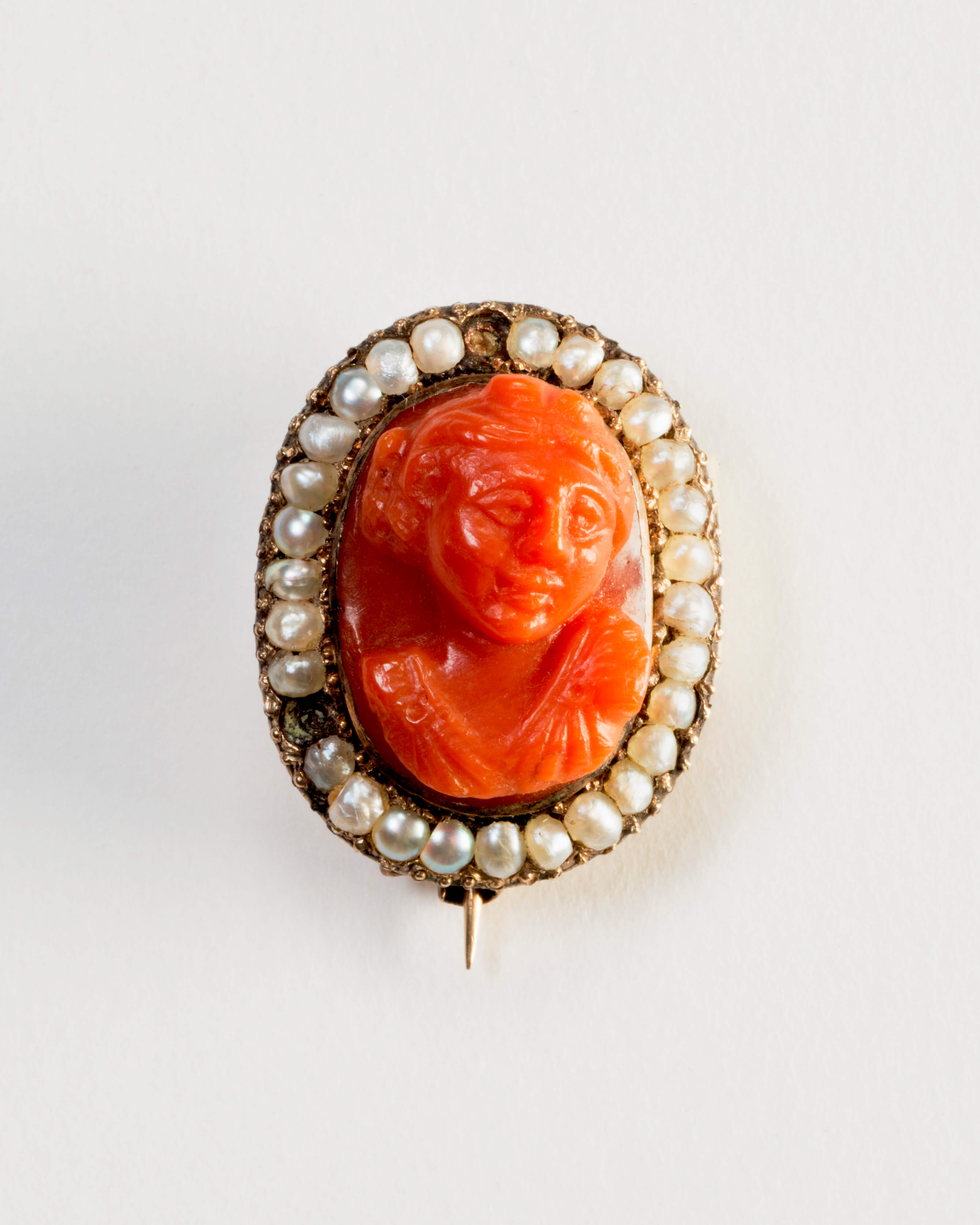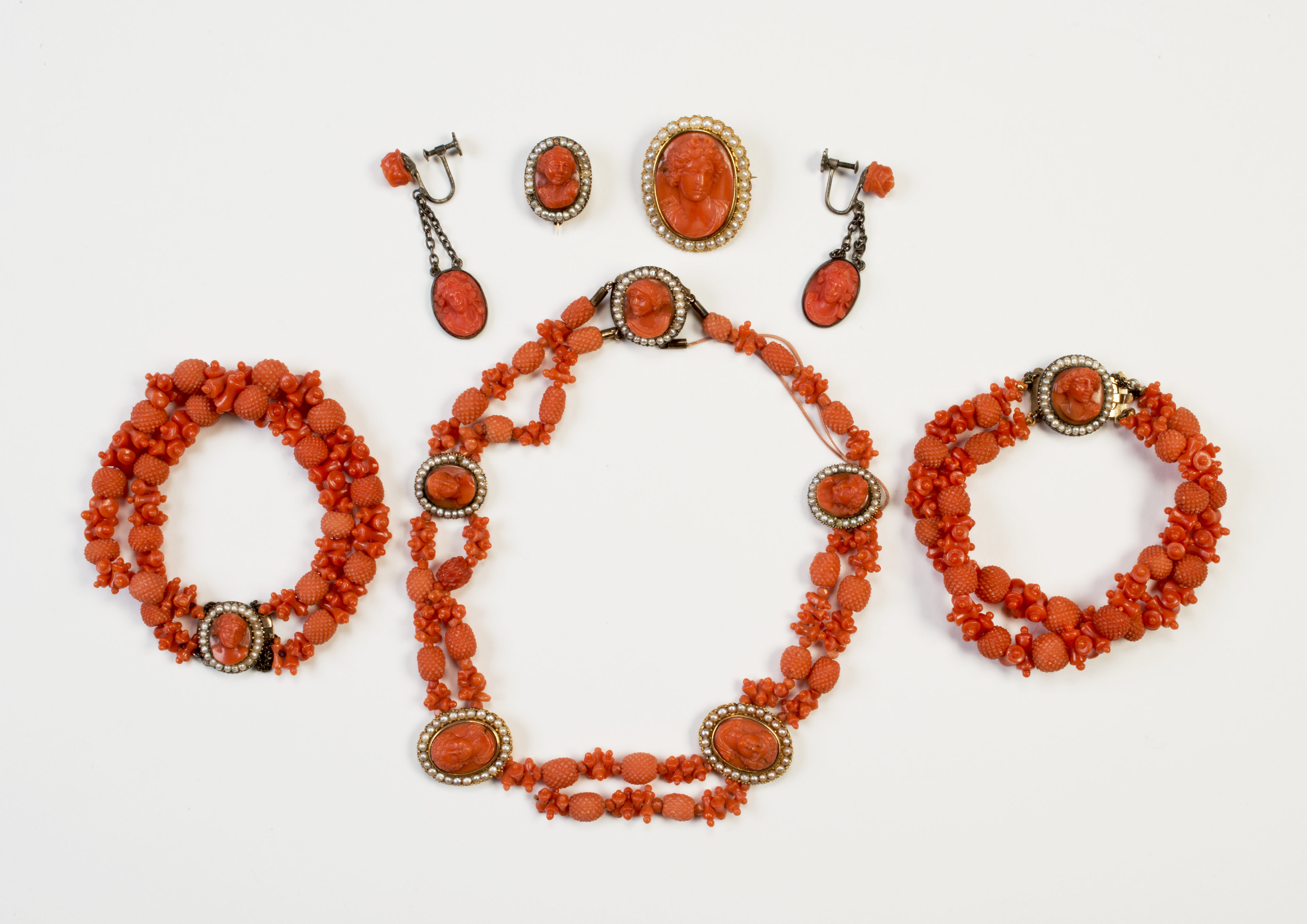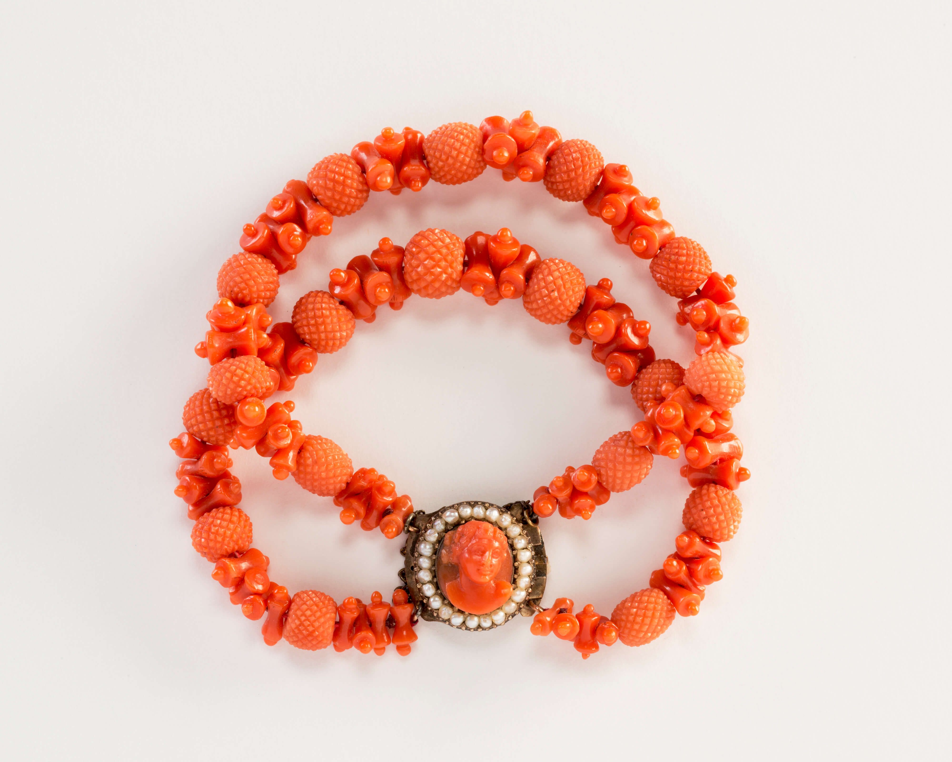This set of coral jewelry belonged to Abigail Chew, wife of USS Constitution’s War of 1812 purser, Thomas Chew. While away from his family for his naval service, Chew frequently sent gifts home to them as tokens of his affection. It is likely that this set of coral jewelry was one such gift brought home after a long voyage to the Mediterranean.