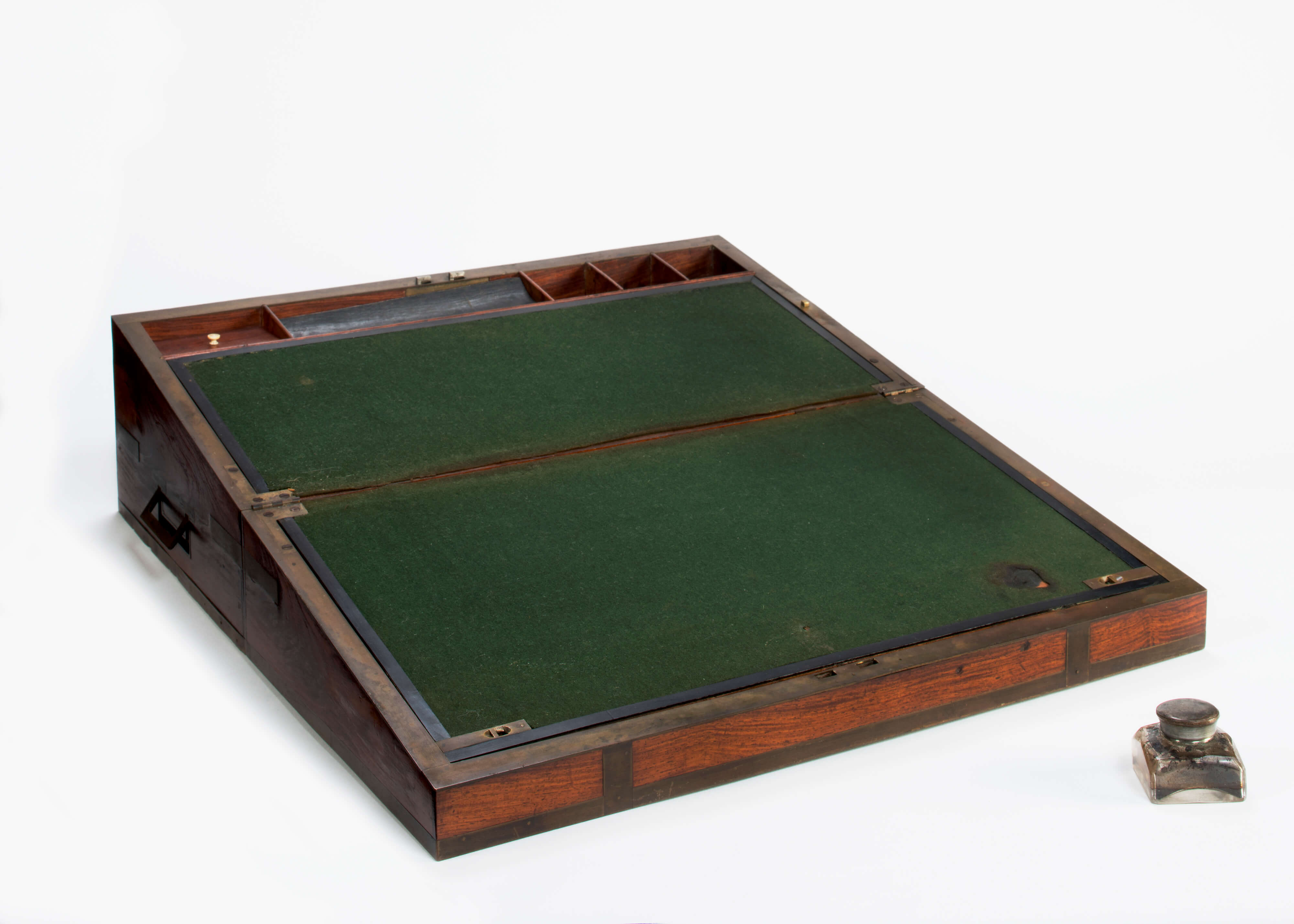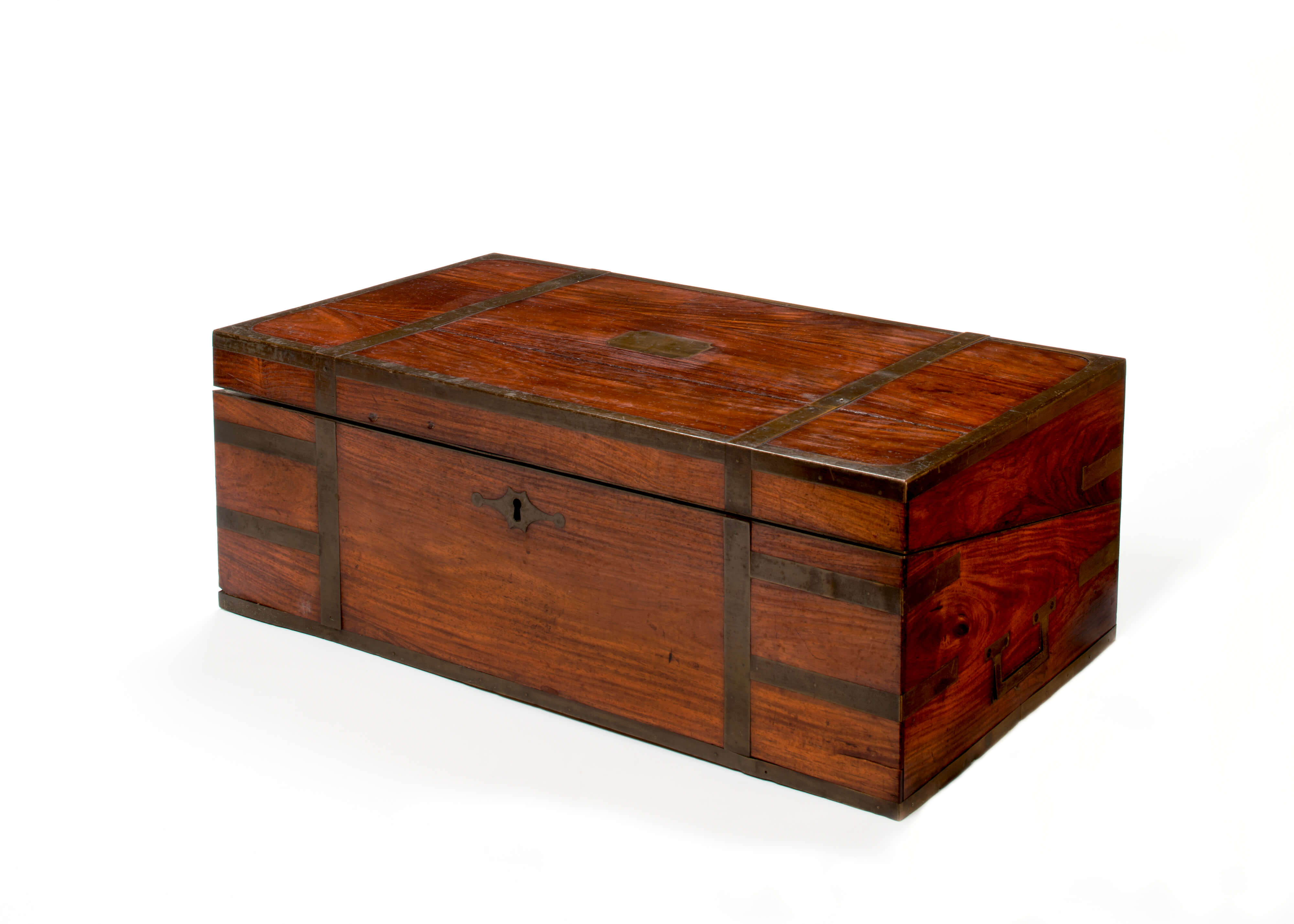 This portable writing desk belonged to USS Constitution’s second captain, Silas Talbot. Desks like this were common among naval officers, because they were easy to transport between ship and shore, provided a convenient writing surface, and served as secure storage for important documents and letters.