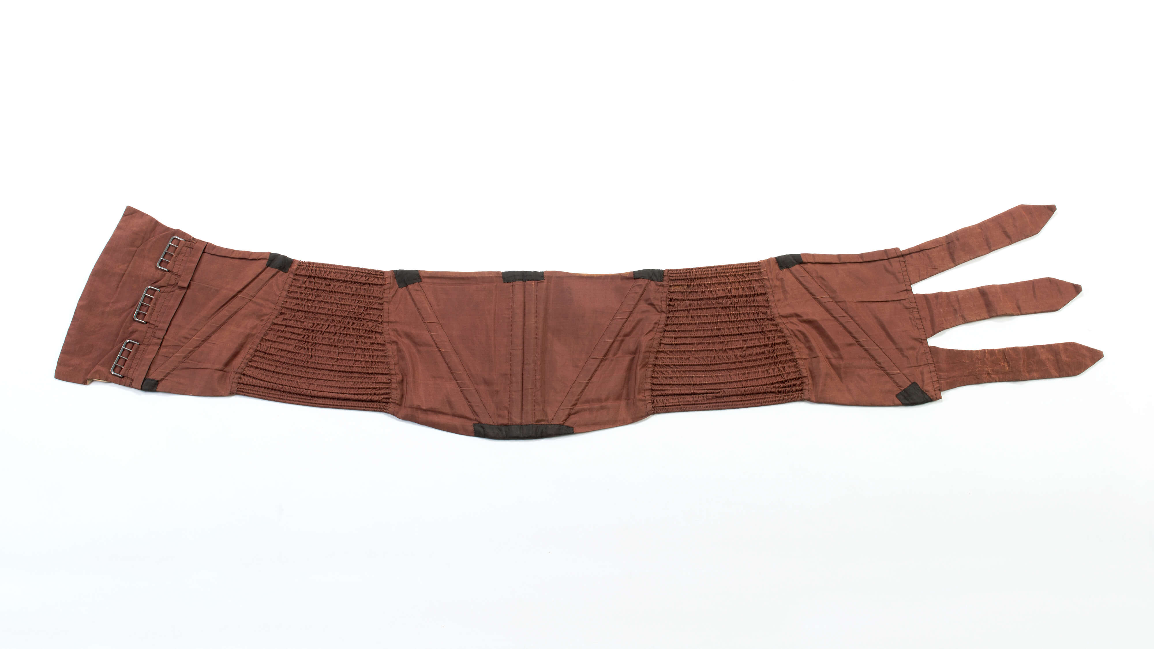 This set of stays belonged to Thomas Chew, who was USS Constitution’s purser during the War of 1812. Stays were a corset that helped fashionable men achieve the popular narrow-waisted look in the 1820s. Surviving portraits of Chew suggest that he was fashion-conscious, and he was certainly wealthy enough to afford the latest trends.
